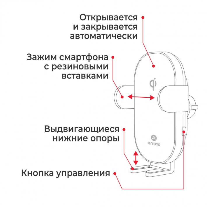 Arroys выпустил обновленный модельный ряд в 2024 г , в том числе, новую модель Vent-W3 - держатель для смартфона с креплением в вентиляцию и опцией беспроводного заряда.