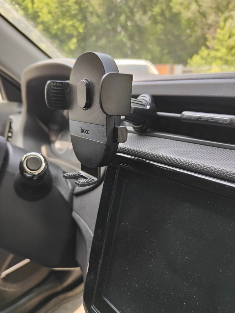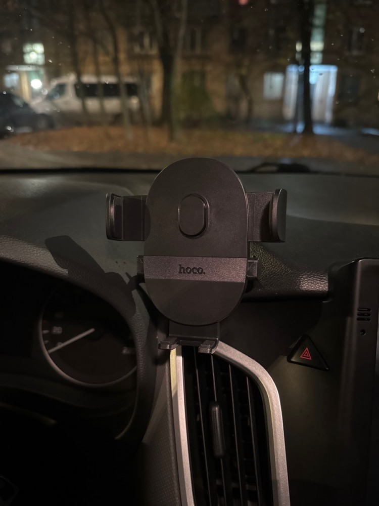 Автомобильный держатель для телефона Hoco H18 Mighty устанавливается в воздуховод с решёткой из прямоугольных пластин (круглые не подходят)