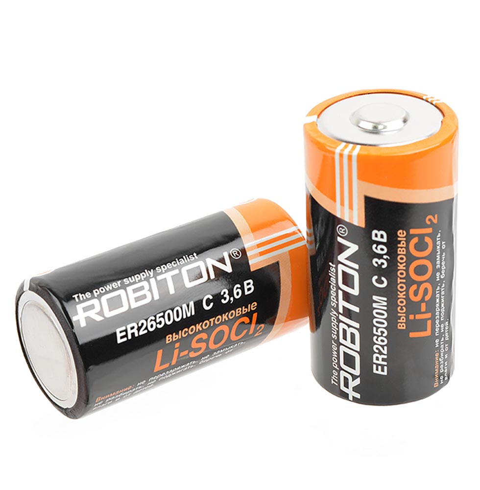 Robiton ER 26500M (C) - это одноразовый, литий-тионилхлоридный (Li-SOCl₂) элемент питания типоразмера С напряжением 3.6В