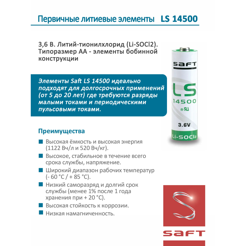 батарейки Saft LS 14500 (AA) 3шт.