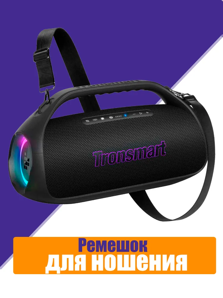 Оснащена встроенной ручкой и съёмным плечевым ремнём. Колонка отличается уменьшенным весом по сравнению с предыдущей моделью Tronsmart Bang 60W: 2.6 кг против 3.08 кг